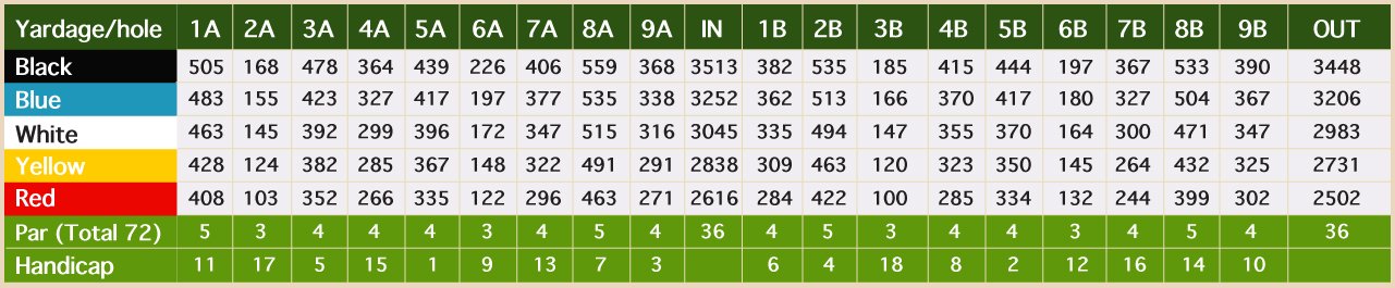 ขนาด: 18 หลุม พาร์: 72 ระยะ: 6,961 หลา